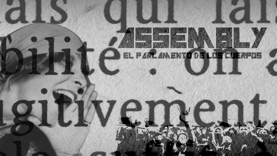 En inglés el término “assembly” sirve tanto para nombrar una reunión de personas como un montaje de acciones, parlamentos o cuerpos. Una asamblea es un teatro, un ensamblaje, un cuerpo cíborg compuesto por extensiones y prótesis y, desde luego, una historia que puede ser reconstruida a partir de las memorias y documentos que arroja al mundo. Si los acontecimientos desbordan la matriz de cualquier relato, los documentos son los fósiles a partir de las que podemos reconstruir una historia, un relato o un nuevo ente cíborg que reúne extensiones fantásticas, ligando los “hechos” con las propias ficciones que alumbran los cuerpos.